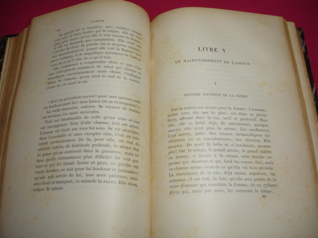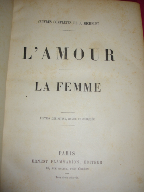 L'AMOUR, LA FEMME J.Michelet édition définitive, revue et corrigée volume grand in-8, 240x160, relié demi chagrin, dos à nerfs, à fleurons, 723 pages Très bel exemplaire ! Paris Flammarion, sans date vers 1840/60