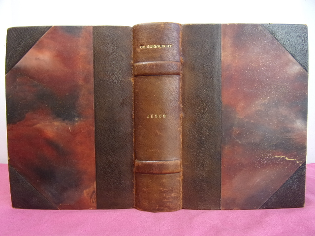 Table: le problème des origines Chrétiennes - La vie de Jésus - L'enseignement de Jésus - La mort de Jésus et la foi de Pâques. vol in-8, 200x140, relié demi cuir, jolie reliure " Art déco ", 694pp. Pages manuscrites insérées avant les pages de garde. Paris, Albin Michel, 1947 Bibliothèque d'un érudit, d'autres ouvrages de ce thème en vente, groupez les achats ! ref/Me71