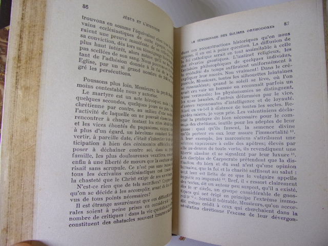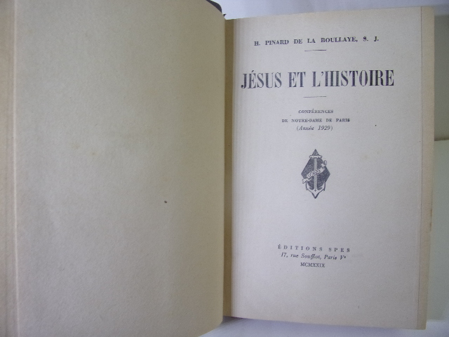Sommaire des 5 Conférences de Notre Dame de Paris ( année 1929) ; la confusion de Babel - fermentation du monde Gréco-Romain - Témoignages des églises orthodoxes - Saint Paul et la tradition primitive - Valeur historique des évangiles vol. relié demi cuir à coins, épidermure, jolie reliure, 200x130, bel exemplaire, 238pp, peu courant Paris édition Spes 1939 ref/98