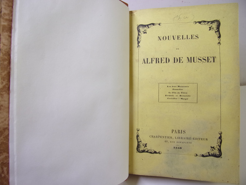 Les deux maîtresses - Emmeline - Le fils du Titien - Frédéric & Bernadette - Croisille - Margot vol. relié 190x125, superbe reliure demi cuir, 371pp couverture d'origine conservée avec dos, très bel exemplaire ! Paris Charpentier 1856 ref/12
