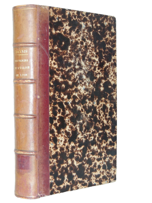 Lyon, Vitte et Perrussel, 1886. Fort in-4, rel. de l'ép. demi-maroquin rouge à coins, dos à nerfs, titre doré, plats bordés d'1 filet doré, tête dorée ; XXXII-550 pp., bandeaux, lettrines et culs-de-lampe, 1 pl. en chromolithographie, 1 pl. en taille-douce, 40 héliogravures h.-t., 38 gravures in-t., liste des Evêques et Archevêques de Lyon, monuments de l'Antiquité chrétienne, tables. Un des exemplaires du tirage de tête sur grand papier (n°II, pour M. Mathevon).