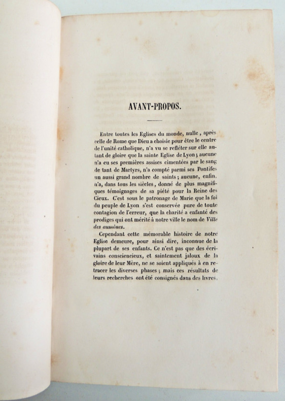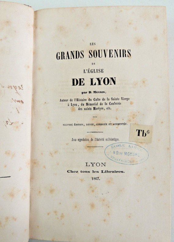 Fort volume in-8, 22x13, relié demi cuir, 542pp, qq rousseurs, bon exemplaire peu courant Lyon, chez tous les Libraires, 1867 ref/13bis