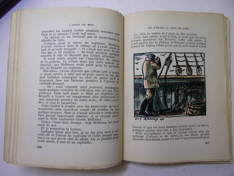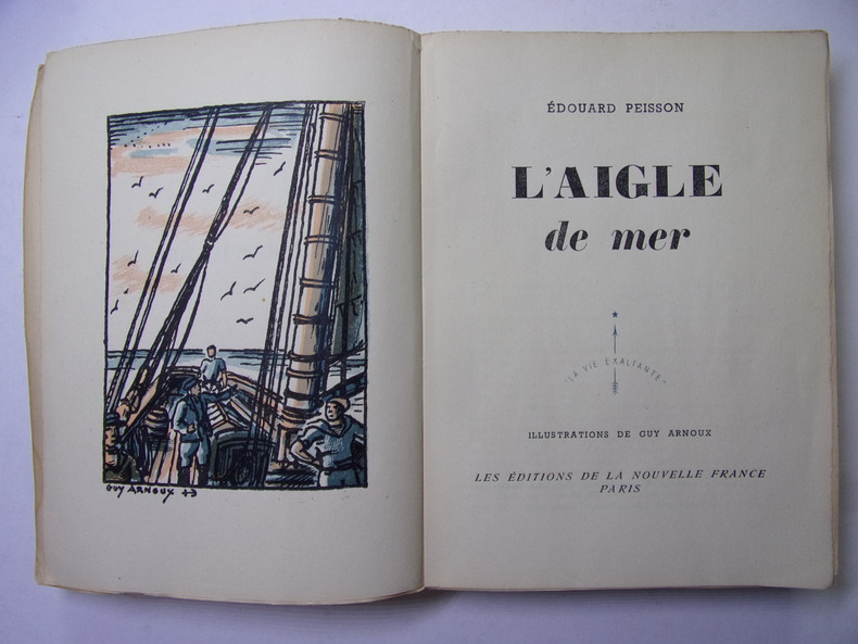 Roman maritime Illustré par Guy Arnoux vol broché, 190x140, leg usure de la couverture, bon état intérieur, bel exemplaire, 355pp Edition de la Nouvelle France, 1945 ref/92