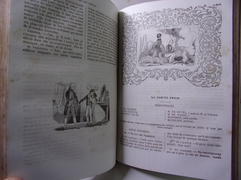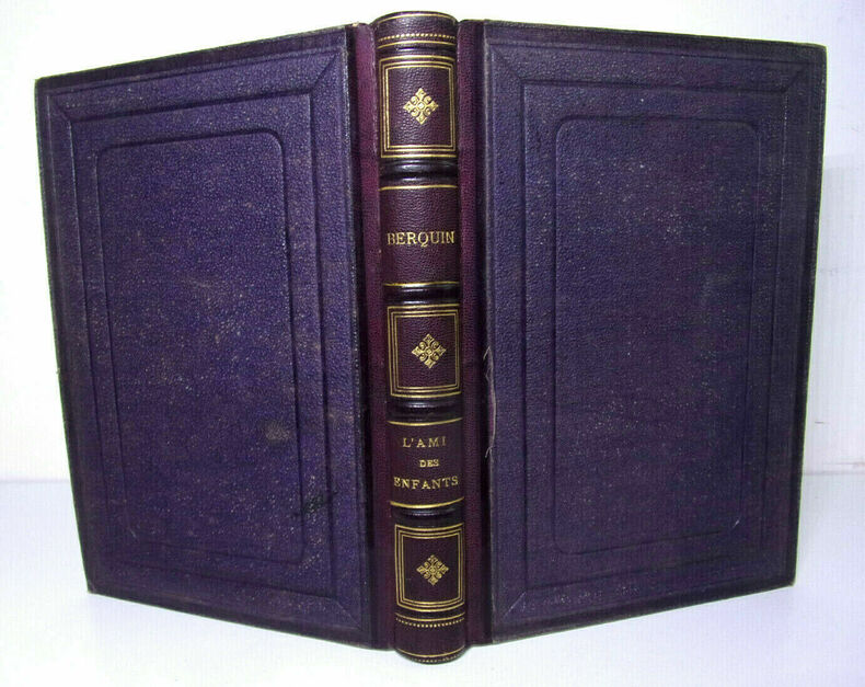 Nouvelle édition, rangée dans un meilleur ordre, 7 vol. petit in-12 reliure demi-chagrin rouge, dos à 4 nerfs dorés orné, tête dorée, filet doré en coupes et mors, Oeuvres complètes de Berquin, Chez Ant. Aug. Renouard, Paris, An XI, 1803, 334 pp. et 19 planches ; 350 pp. et 20 planches ; 356 pp. et 16 planches ; 323 pp. et 15 planches ; 359 pp. et 9 planches ; 399 pp. et 9 planches ; 310 pp. et 9 planches, soit un total de 97 planches hors texte (y compris les frontispices)