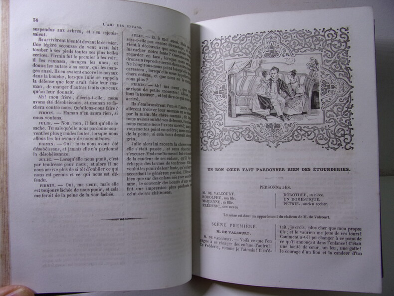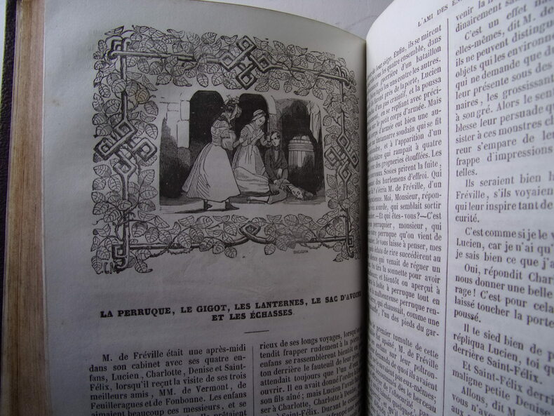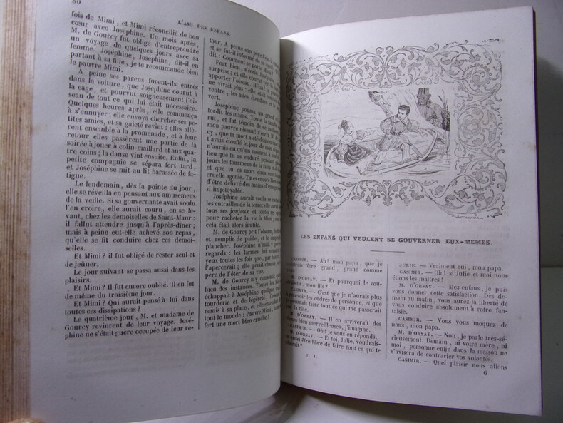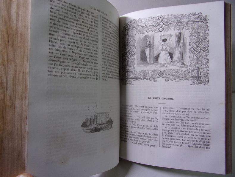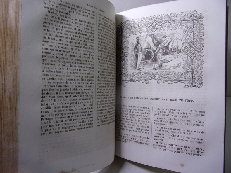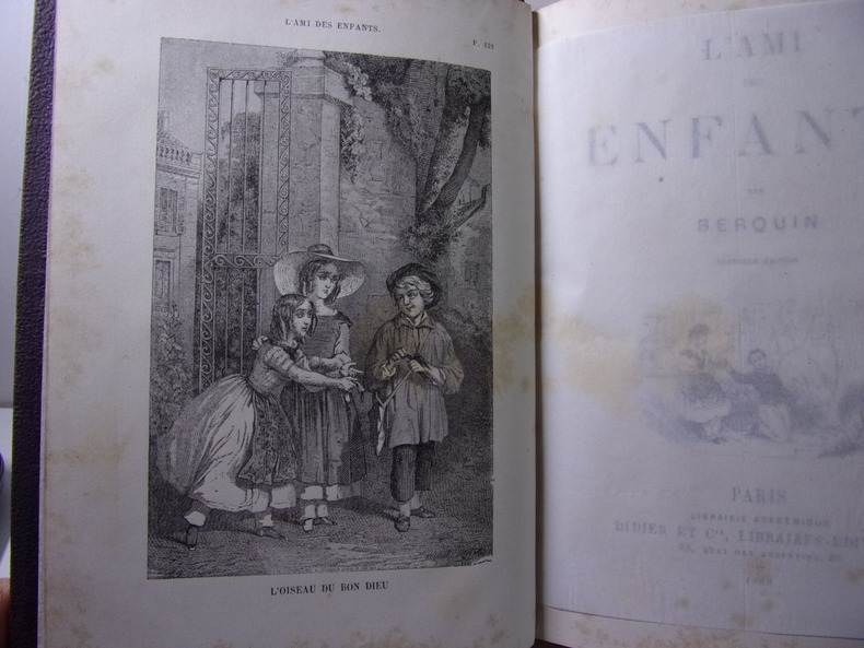 Bon état pour cet exemplaire bien complet des 7 tomes contenant l'intégralité de "L'Ami des Enfans", quasiment complet des "7 frontispices et 91 figures charmantes" signalées par Cohen, et constituant les 7 premiers tomes des 17 tomes des Oeuvres complètes de Berquin (97 planches sur 98, reliures un peu frottées, qq. traces d'usage, ex-libris signé Gardella avec devise : De la douce lumière. De l’ombre. De la flamme. Et des livres amis ). Cohen, I, 143. Natif de Bordeaux, Arnaud Berquin (1747-1791) fut notamment le précepteur des deux filles de l'éditeur Panckoucke ; il reste l'un des grands précurseurs de la littérature pour enfants. Cette excellente édition de Renouard réunit sous le titre commun d'Ami des enfants, l'Ami des enfants et l'Ami de l'adolescence. Renouard a organisé dans un ordre raisonné et proportionné aux progrès de l'intelligence, les contes et drames que Berquin livrait tous les mois à ses souscripteurs.