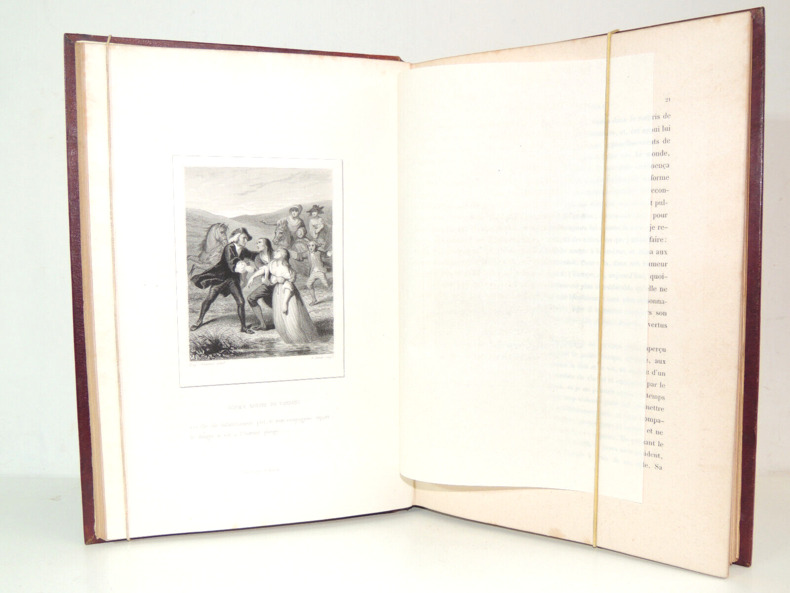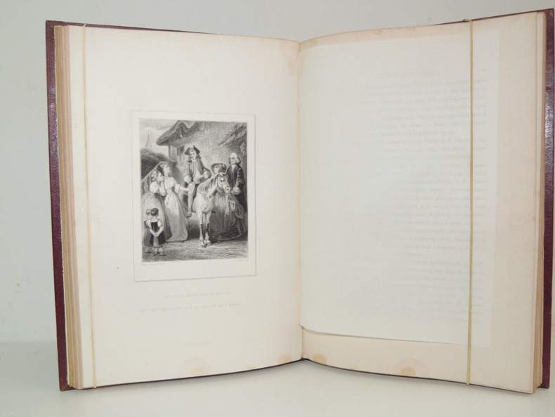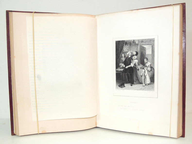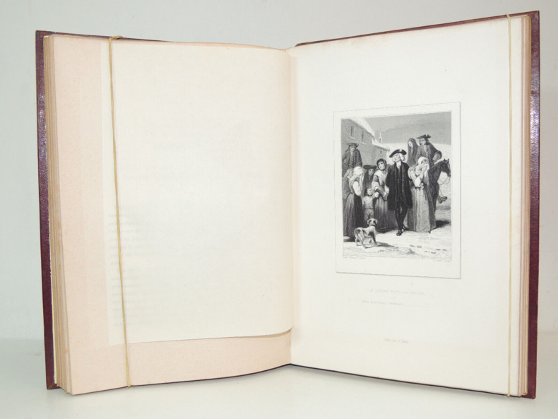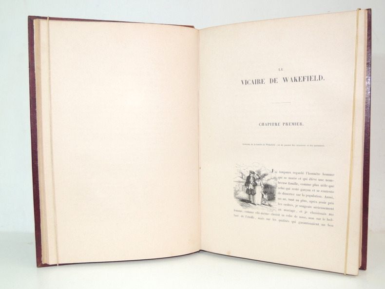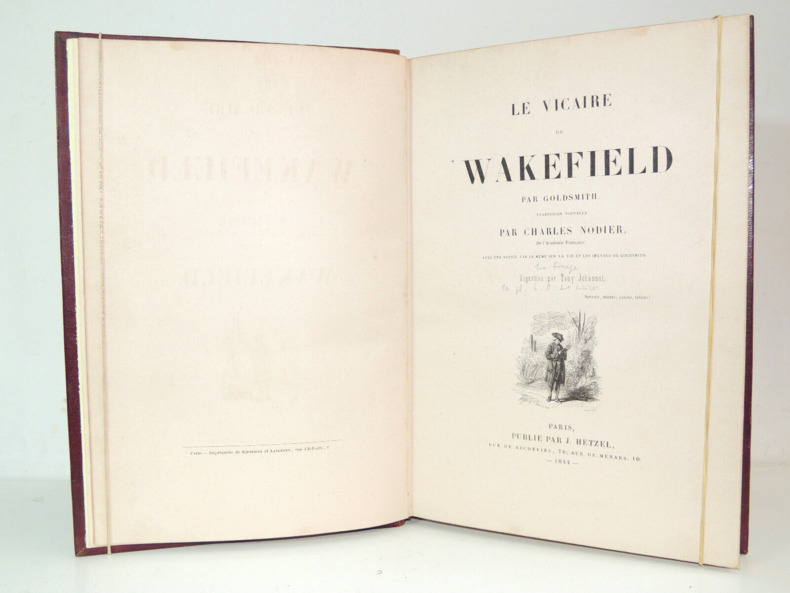 traduction nouvelle par Charles Nodier, avec un notice par le même sur la vie et les œuvres de Goldmith 1er tirage des 10 planches hors texte Tony Johannot vol in-4, 250x200, relié plein chagrin, décors sur les plats, très bel état intérieur, toutes tranches dorées, 253pp Paris, Hetzel, 1844