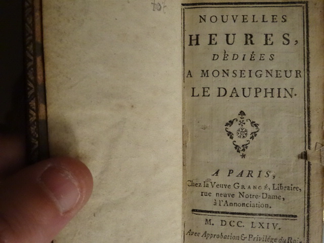 Ravissant ouvrage calligraphique entièrement gravé, dédié au Dauphin.Elisabeth Sénault, fille du graveur Louis Sénault, livre ici son premier travail : un livre d'heures accompagné de lettrines, de fleurons, d'en-têtes et de culs-de-lampe gravés en taille douce.Cachet de l'Association française des membres de l'Ordre de Malte, et ex-libris du comte Coustant d'Yanville.