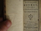 Ravissant ouvrage calligraphique entièrement gravé, dédié au Dauphin.Élisabeth Sénault, fille du graveur Louis Sénault, réalise son premier ouvrage, dans la lignée de son père, mais en plus petit format : un livre d’heures accompagné de lettrines, de fleurons, d’en-têtes et de culs-de-lampe gravés en taille douce. Le frontispice représentant Saint Bruno gravé par Raymond semble ajouté.Jolie reliure à dentelle en maroquin de l’époque. Cachet de l’Association française des membres de l’Ordre de Malte, et ex-libris du comte Henri Coustant d’Yanville.
