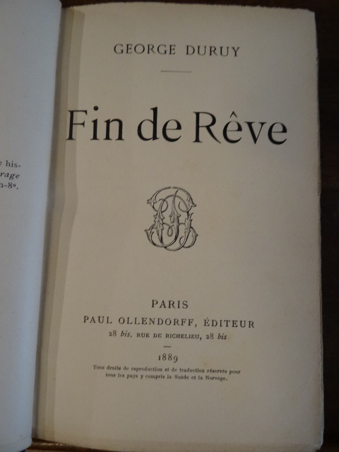 Paris, Ollendorf, 1889. In-12, demi chagrin, dos à nerfs, titre doré, initiales dorées E.P. en pied, faux-titre, titre, 304 pp. Edition originale, plat supérieur conservé. Coins légèrement émoussés, coupes légèrement usées, papier jauni, quelques rousseurs, petites déchirures sur le plat conservé.