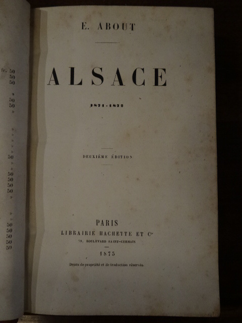 Paris, Hachette et Cie, 1914 ; in-12, 349 pp., broché, adhésif noir sur le dos du volume. Nouvelle édition. Récit d'un voyage en Alsace occupée par les prussiens.