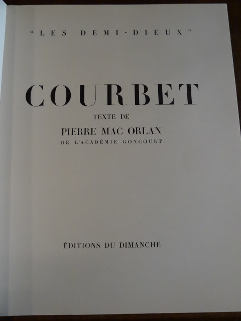 Paris, Editions du Dimanche, 1951. In-4, broché, sans pagination, titre, 10 ff non chiffrées, environ 100 pages d'illustrations. Ouvrage illustré de 48 reproductions en noir des oeuvres de Courbet, chacune représentée dans son ensemble et en gros plan. Collection "Les Demi-Dieux". Couverture piquée, quelques rousseurs en début et fin de volume.