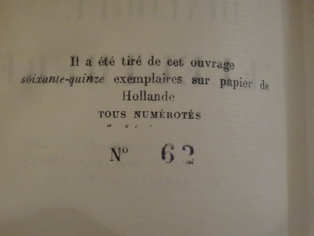 Paris, Emile-Paul, 1920. In-12, broché, 242 pp. Tirage limité numéroté à 75 exemplaires sur Hollande, celui-ci portant le numéro 62. Exemplaire non coupé. Exemplaire à grandes marges, non rogné. Plat supérieur et dos insolés, papier jauni en début de volume et sur les grandes marges, rousseurs surtout sur les grandes marges, grandes marges courbées.
