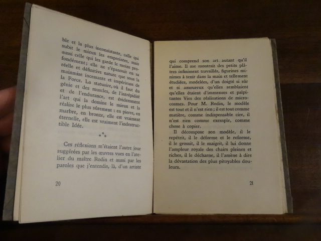 Paris, A l'Enseigne de la Porte Etroite, 1925. Plaquette petit in-12, brochée couverture rempliée, 52 pp. Edition originale, tirage limité numéroté à 650 exemplaires, celui-ci étant un des 20 sur Japon, portant le numéro 14. Brochage fragile.