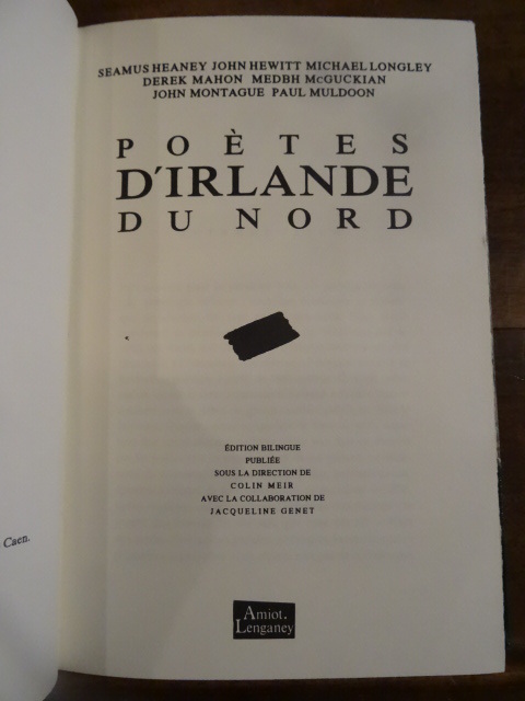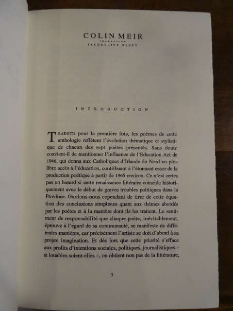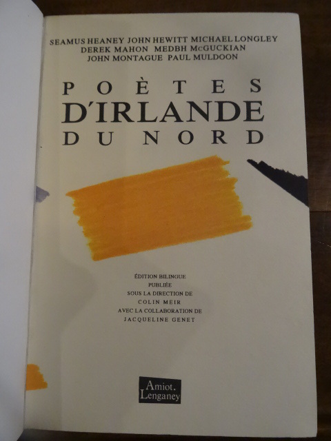Cet ouvrage contient des poèmes de 7 auteurs nord-irlandais du XXème siècle: Seamus Heaney, John Hewitt, Michael Longley, Derek Mahon, Medbh McGuckian, John Montague, Paul Muldoon.