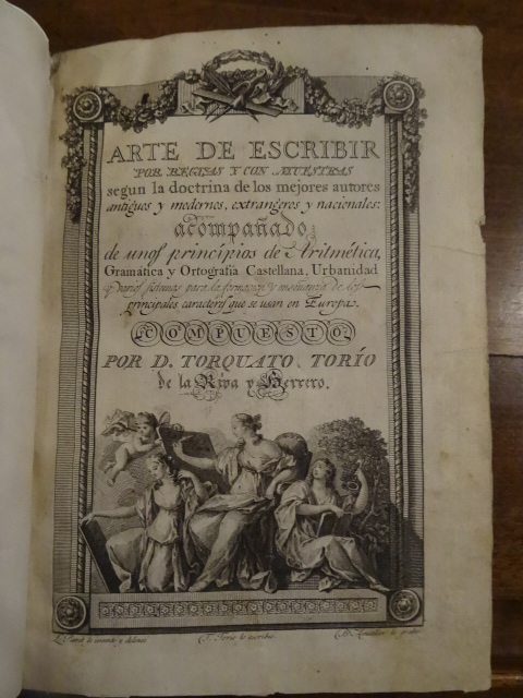 Torcuato Torío de la Riva y Herrero, 1759-1820 Autor, como casi todos los calígrafos, de obras pedagógicas. Su obra Arte de escribir por reglas y con muestras es obra capital, aunque discutida. Distingue dos partes principales: teórica y práctica. Comienza con unas lecciones prácticas de dibujo lineal, prevenciones generales y comunes a toda clase de escritura y todo lo relativo al manejo de la pluma. En la parte práctica trata el corte de la pluma, sus movimientos y trazos, imitación de las muestras de su libro. Continúa con varios tratados pedagógicos. Las láminas se refieren al texto para que sirvan de comporbación a sus reglas. Las 58 láminas caligráficas están todas grabadas en dulce; unas por Asensio, otras por Castro y otras por Gangoiti, y todas ellas tienen la vuelta en blanco. Como demostración de su letra bastarda muestra ejemplos gráficos tomados de Icíar, Cuesta, Padre Flórez, Morante, Casanova, Patiño, Polanco, Palomares, Anduaga... Cf Universidad de Navarra.