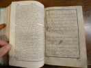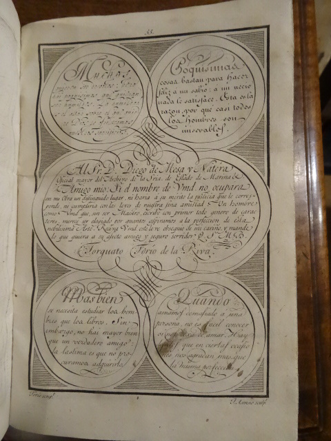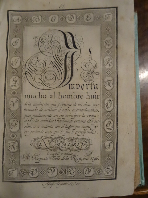 Madrid, en la imprenta de la viuda de don Joaquin Ibarra, 1802. Petit in-4 dans une reliure recouverte d'un papier vert (la reliure en dessous doit être très abimée). Xxxi, 445 pp. 1 p non chiffrée. Illustré d'un titre-frontispice par Paret, Ferio, et Amelter, et de 58 planches. Ex-dono manuscrit en regard du titre frontispice, a Julian Solana par le professeur Claudio Villary Pinto, Maitre d'école. Papier légèrement jauni.