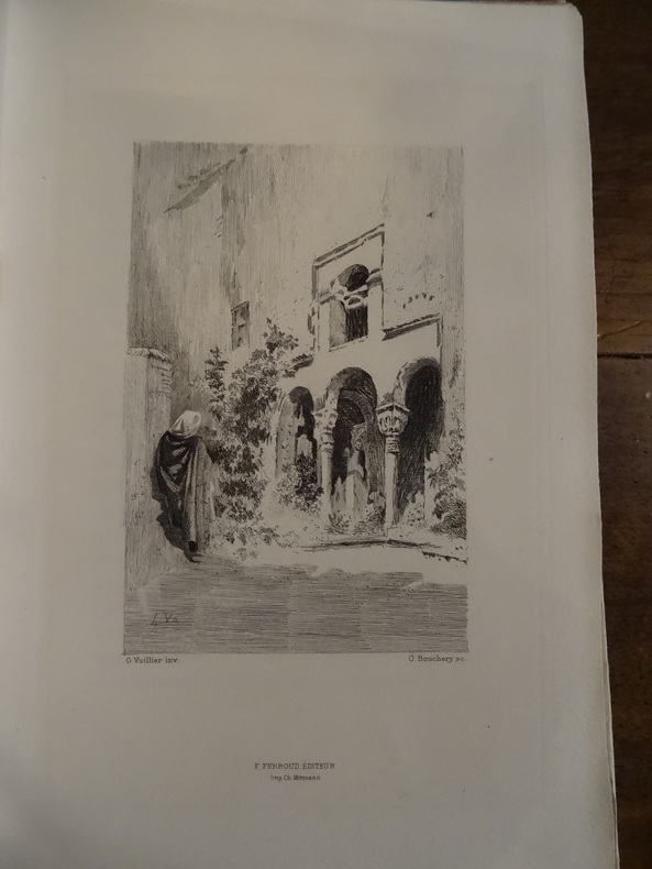 Paris, Ferroud, 1912. In-12, broché couverture rempliée, plat supérieur illustré d'un médaillon en couleurs, 97 pp. Tirage limité numéroté à 762 exemplaires, celui-ci étant un des 615 exemplaires sur vélin teinté d'Arches portant le numéro 676. Ouvrage illustré de nombreuses compositions de Gaston Vuillier dont 1 frontispice et 5 hors texte, gravées à l'eau-forte par Omer Bouchery. Exemplaire gauchi, couverture légèrement tachée, quelques rousseurs (surtout en début et fin de volume).