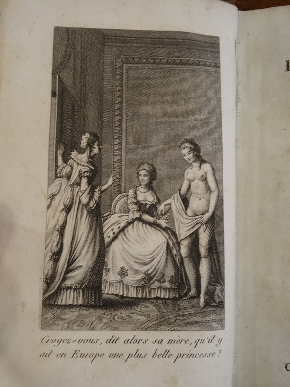 Hambourg, et se trouve à Paris chez les Marchands de Nouveautés, 1806. 2 tomes en 1 volume in-12, demi basane époque, dos lisse orné de filets dorés, titre doré, titre, 240 pp; titre, 241 pp. Ouvrage illustré d'un frontispice. Coins émoussés, coupes usées, frottements sur les coiffes et les mors, manques à la coiffe supérieure, rousseurs, déchirure pages 19-20 avec atteinte au texte.