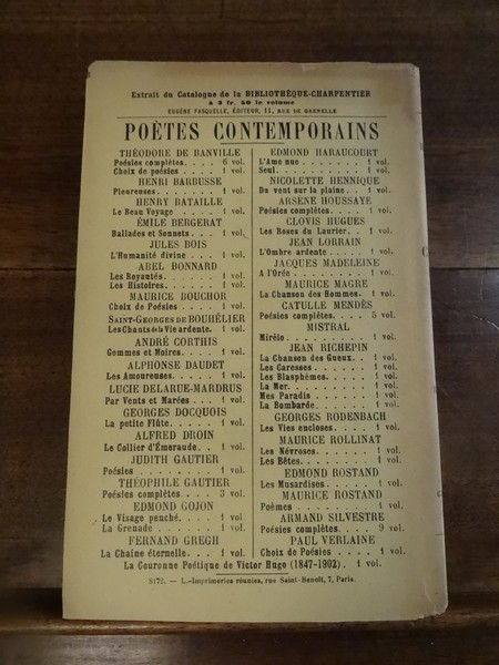 Paris, Bibliothèque-Charpentier, 1898. 12 x 19, 223 pp., reliure larges dos/coins cuir à 5 nerfs, tête dorée, couverture conservée, plats et pages de garde beau papier marbré, très bon état (sauf papier jauni).