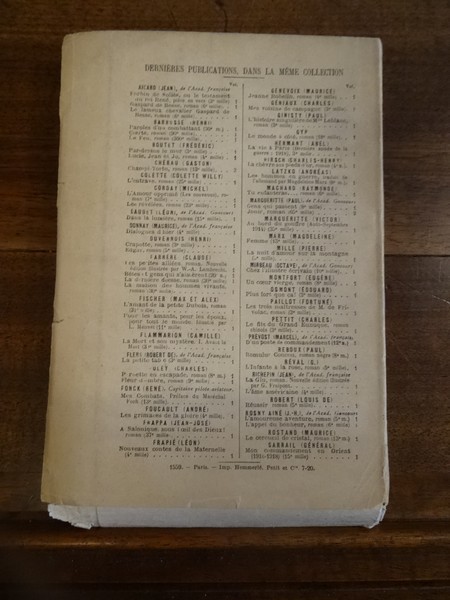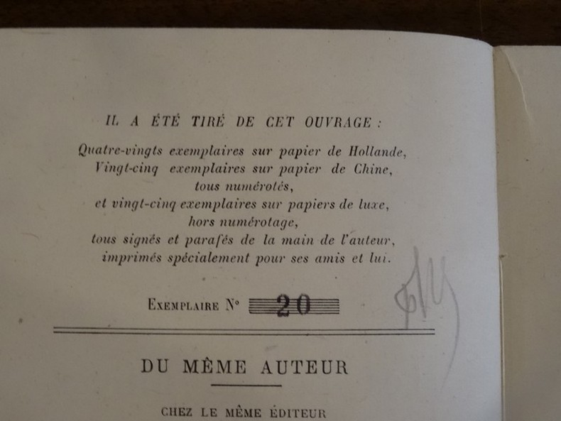 Paris, Flammarion, 1920. In-12, broché, 283 pp. Edition originale, tirage limité numéroté à 130 exemplaires, celui-ci étant un des 25 sur papier de Chine portant le numéro 20. Ouvrage comprenant 13 illustrations de W.A. Lambrecht (1 sur le plat supérieur et 12 hors texte). Exemplaire à toutes marges. Petites déchirures sur les plats et sur les mors, marges inférieures pliées, quelques rousseurs.