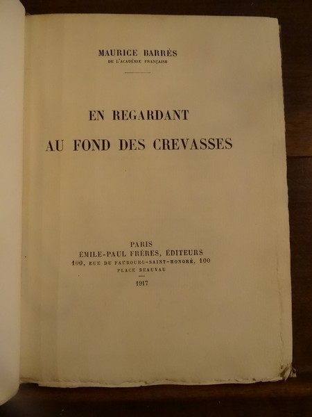 Barrès publie en 1917, dans l’Echo de Paris, une série de sept articles, intitulée « En regardant au fond des crevasses » dans lesquels il apostrophe le gouvernement. Les crevasses pour Maurice Barrès ce sont toutes les « affaires » d’espionnage et de trahison en cours comme celle dite « l’affaire du Bonnet Rouge ». Barrès et le journal "L'Action Française" accusent Louis Malvy, alors ministre de l'Intérieur, de trahir la France en fournissant à l'Allemagne des renseignements militaire et diplomatiques. Pour se défendre et se disculper, Malvy provoque un débat à la Chambre des Députés. Mais il sera forcé de démissionner en septembre 1917, et une juridiction d'exception sera créée en vue de son inculpation. Barrès rapporte avec véhémence les arguments de son attaque contre Malvy à la Chambre et divers éléments à charge. — "... Nous voici arrivés à 1917, aux moments sombres de la guerre : par une suite de fautes inconcevables, les généraux vainqueurs, les hommes de la Marne et de la Somme, se trouvent écartés. Un Gouvernement faible, d'économistes, d'idéologues ; à l'offensive manquée d'avril, à la chute de tant d'espérances succède un accès de découragement, qu'aggrave une redoutable attaque par l'intérieur. C'était un pullulement de louches personnages, d'aigrefins, de figures équivoques et véreuses; des allées et venues suspectes au delà des frontières, des complaisances inquiétantes et des complicités inavouables de la Sûreté ; une presse immonde au grand jour salissait la patrie, déshonorait la gloire, bafouait l'énergie, excusait l'abandon ; il y avait des chèques saisis et rendus par ordre à des bandits, des secrets étranglés au fond d'une prison avec un lacet de soulier; c'était une entreprise de démoralisation, derrière laquelle on devinait toujours le même personnage, qui pontait sur la défaite de la patrie. Le Gouvernement hésitait. Mais il faut lire dans Barrés l'histoire de ces dix mois. Ce fut l'heure la plus critique de la guerre : on faisait la guerre sur deux fronts, – contre l'ennemi du dehors et contre l'ennemi du dedans ; contre les gaz allemands et contre le défaitisme et le pacifisme à l'intérieur. C'est dans ces moments-là que Barrés est sublime. Pudique, retenu, un peu contraint dans l'enthousiasme, la colère le rend superbe : superbe de courage, d'indignation et de mépris. Le terrible pamphlétaire, le cruel polémiste n'eut jamais plus de génie : il a des paroles qui soufflettent, de ces mots qui sont des fers rouges. Les séances de la Chambre, la suite de scènes atroces qu'il intitule : “Dans le cloaque”, “En regardant au fond des crevasses”, valent les plus belles pages de Leurs figures : ce sont les Châtiments du régime parlementaire. « J'ai, disait-il, le don de voir clair. » (...) Mais Barrés ne s'en tint pas là : il eut aussi son heure d'histoire, le jour ou il dénonça en pleine Chambre la « canaille du Bonnet rouge », et où un ministre livide, devant son réquisitoire, s'abîma comme une loque, convaincu de forfaiture. Ce jour-là, la France respira mieux..." (Pierre Troyon, Revue des Deux Mondes, 1924)