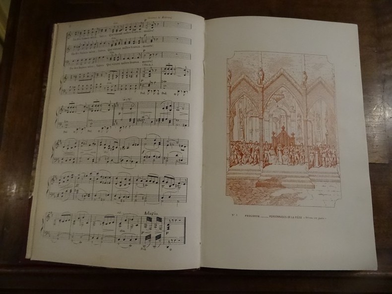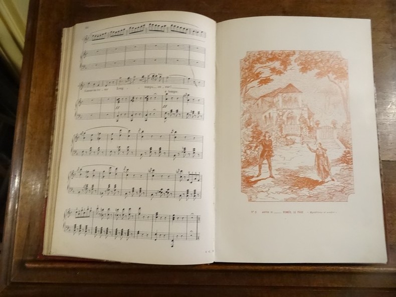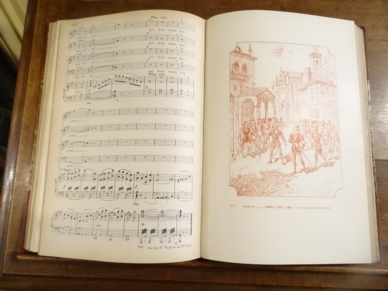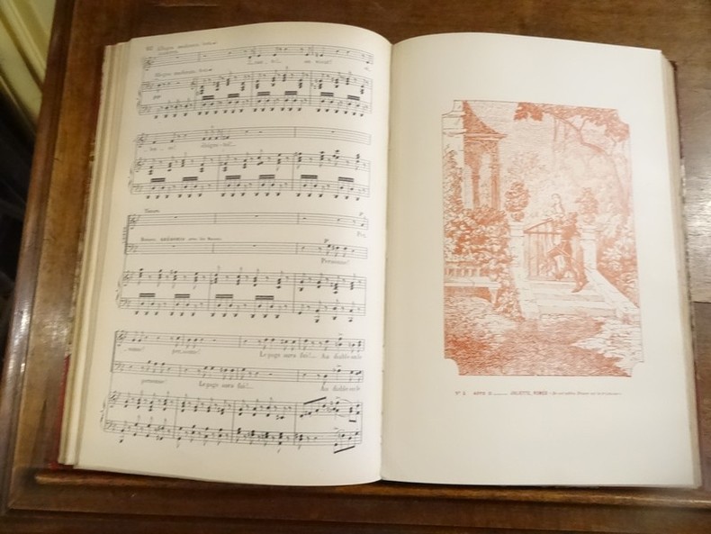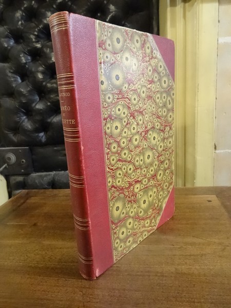 Paris, Choudens, ss date (fin xixème). Grand in-8 en demi-chagrin à coins rouge au dos lisse orné de filets dorés. Papier marbré caillouté œil de chat sur les plats. Toutes tranches dorées. Couvertures conservées. 265 pp. 15 planches d'illustrations en sanguine. Légers frottements à la coiffe supérieure et aux coins inférieurs. Papier légèrement jauni.