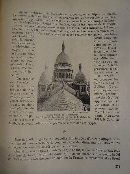 Paris, Spes,1937. In-4, broché, couv. illustrée, 519p. Table : Des origines au XIIe siècle - 659 ans de vie monacale - La paroisse de St Pierre de Montmartre et ses filles émancipées - Eléments profanes sur la butte sacrée - La basilique du voeu national ; le sacré coeur de Montmartre. Très bon état, exemplaire non coupé, dos un peu frotté