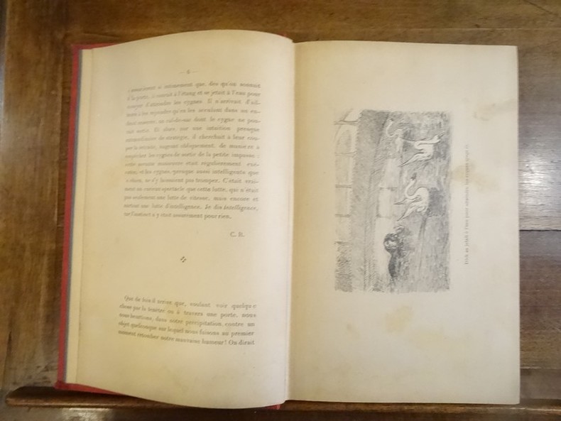 Paris, Louis Chaux, ss date (début XXème). Grand in-8 en pleine toile rouge aux plats décorés d'une composition florale dorée. Toutes tranches dorées. 2 ff, 207 pp. Illustrations in et hors texte en noir et blanc de René Leblond. Tache d'encre sur le plat supérieur, décolorations sur le plat inférieur. Papier bruni.