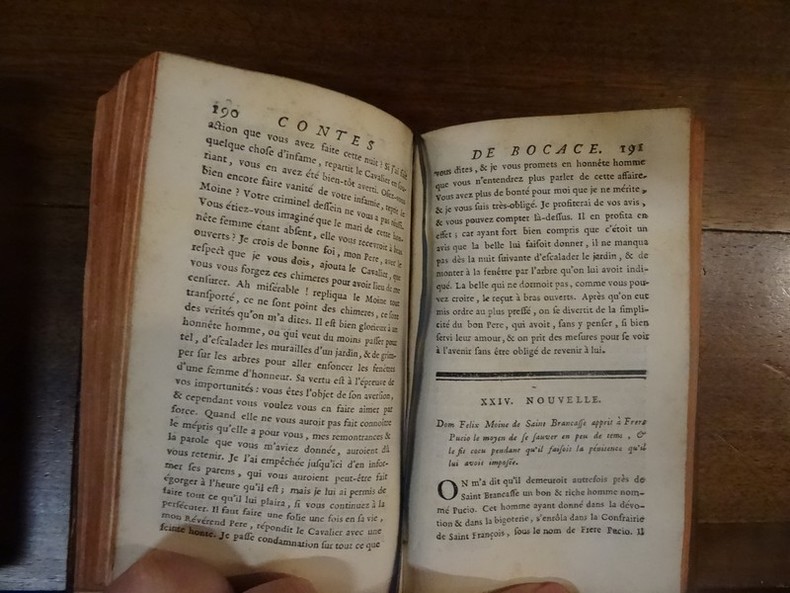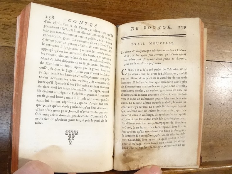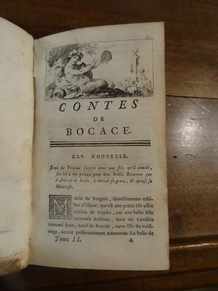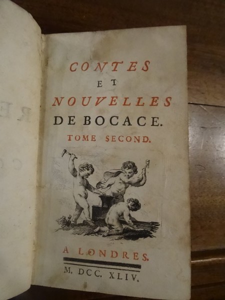 Londres, ss éditeur, 1744. 2 volumes petit in-12 en plein veau moucheté au dos à nerfs ornés de fleurons dorés. 2 ff, 335-(11) pp, 2 ff, 385-(13) pp. Illustré de 4 vignettes en page-de-titre et en tête des premiers chapitres des 2 tomes. Deux coiffes arasées, deux supra-libris grattés. Manques de cuir sur le plat supérieur du tome 2. Anciennes moisissures sur certaines pages du tome 2 avec auréoles. mors du tome 2 fendu mais reste solide.