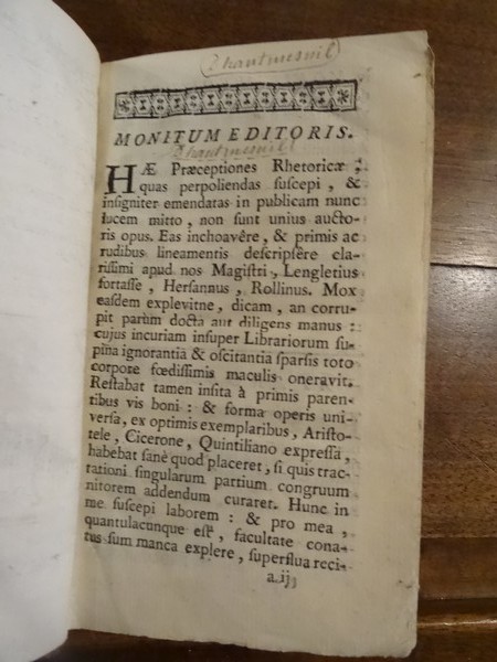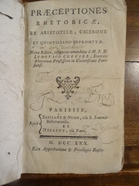 Paris, Saillant, Desaint, 1770. In-12 pleine basane au dos lisse. iv, 194 pp, 3 ff. Manque de cuir au dos. Manque le papier du deuxième contre-plat, papier légèrement jauni.