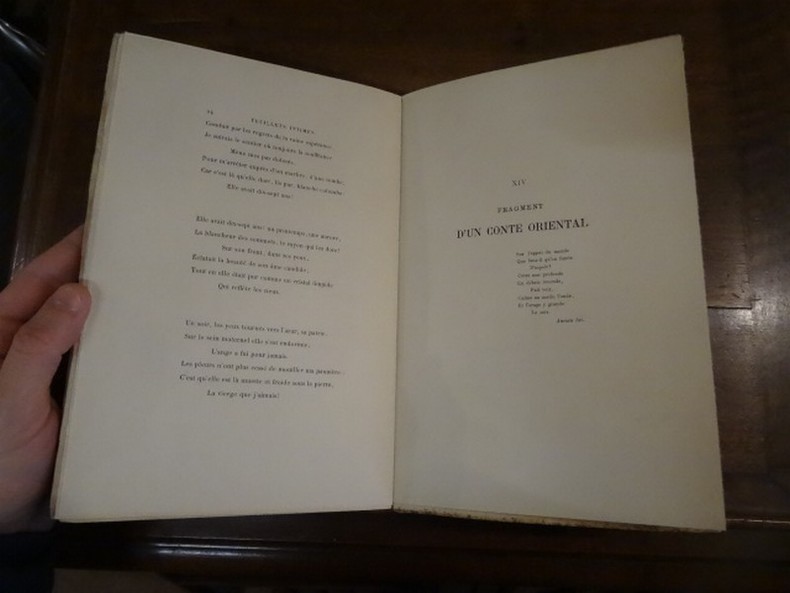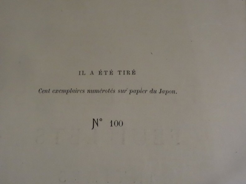Paris, Charpentier, 1884. In-8, broché, faux-titre, titre, 252 pp. Tirage limité numéroté à 100 exemplaires sur Japon, celui-ci portant le numéro 100. Déchirures au dos, couverture piquée, taches sur le plat supérieur, dos cassé, ouvrage débroché.
