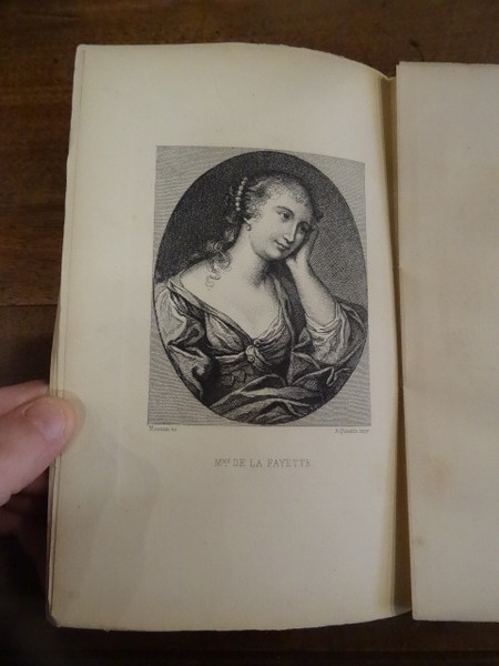 Paris, Quantin, 1878. In-8, broché, 302 pp, 1 p non chiffrée. Un portrait de La Fayette en frontispice et 2 eaux-fortes hors texte de Masson. Fac-similé d'une lettre de l'auteure. Texte encadrée de filets rouges. Manque au dos, dos cassé, ouvrage débroché, plat supérieur presque détaché, papier un peu jauni, quelques rousseurs.