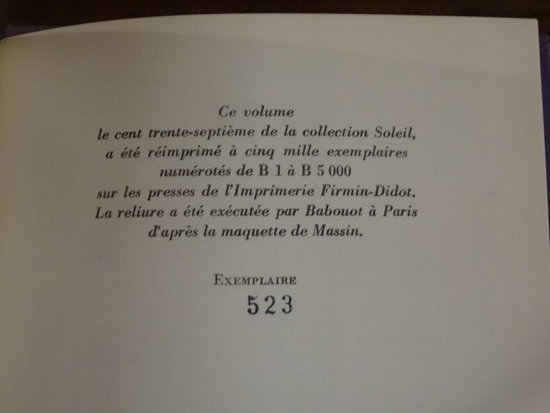 Paris, Gallimard, 1963. In-8, pleine toile éditeur de Babouot, d'après la maquette de Massin, titre doré au dos et sur le plat supérieur, 686 pp. Tirage limité numéroté à 5000 exemplaires, celui-ci portant le numéro 523. Dos insolé, coins inférieurs légèrement usés, quelques discrètes taches sur le plats.