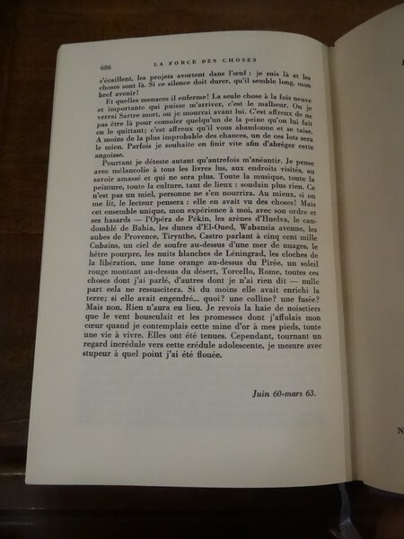 Broché bon état . Contenu propre . Couverture légèrement piquée .193. 686 pages . La Force des choses de Beauvoir. Simone de (1963)