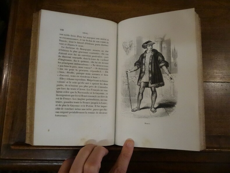Histoire des Ducs de Bourgogne de la Maison de Valois 1364-1477 Barante ( Prosper Brugière de ) Amable-Guillaume-Prosper Brugière, baron de Barante, est un historien, écrivain et homme politique français, né à Riom le 10 juin 1782 et mort au château de Barante à Dorat le 22 novembre 1866 Complet en 13 volumes in8, 215x130, demi veau, dos lisses ornés de l'époque, tranches jaspées, bel état intérieur. Paris, Ladvocat 1826 La maison de Valois-Bourgogne est une branche cadette (en) de la maison de Valois, née de la concession du duché de Bourgogne par le roi de France Jean II le Bon à son fils Philippe le Hardi, en 1363. Elle est souvent qualifiée de « seconde maison de Bourgogne » pour la distinguer de la maison capétienne de Bourgogne, issue de Robert Ier de Bourgogne (1011-1076). La dynastie des ducs de Bourgogne, outre le duché bourguignon, gouverne de 1363 à 1482 par mariages successifs, achats ou conquêtes, de vastes territoires, notamment dans la région des anciens Pays-Bas. Premiers pairs de France, les ducs prennent la tête du parti bourguignon dans la guerre civile entre Armagnacs et Bourguignons, au cours de laquelle Jean sans Peur est assassiné, poussant son fils Philippe le Bon à s'allier avec les Anglais dans la guerre de Cent Ans — une alliance finalement rompue en 1435 par le traité d'Arras. Les ducs de Bourgogne de la maison de Valois rivalisent dès lors en prestige avec leurs cousins royaux, ayant uni un grand nombre de fiefs français et impériaux, parmi les plus riches d'Europe, sous leur domination. Cependant, le projet d'ériger cet État bourguignon en royaume autonome échoue lorsque le dernier duc, Charles le Téméraire, est tué à la bataille de Nancy en 1477. Le dernier souverain de la dynastie, la duchesse Marie de Bourgogne, tente d'affirmer son autorité et, ce faisant, se marie à Maximilien de Habsbourg. La majeure partie de ses terres passent à sa mort à son fils aîné, Philippe le Beau, mais le duché de Bourgogne lui-même revient au domaine royal français. Marie meurt en 1482, mettant ainsi fin à la maison de Valois-Bourgogne. La descendance de Marie et Maximilien est parfois qualifiée de « maison de Habsbourg-Bourgogne » ou de « Bourgogne-Habsbourg »