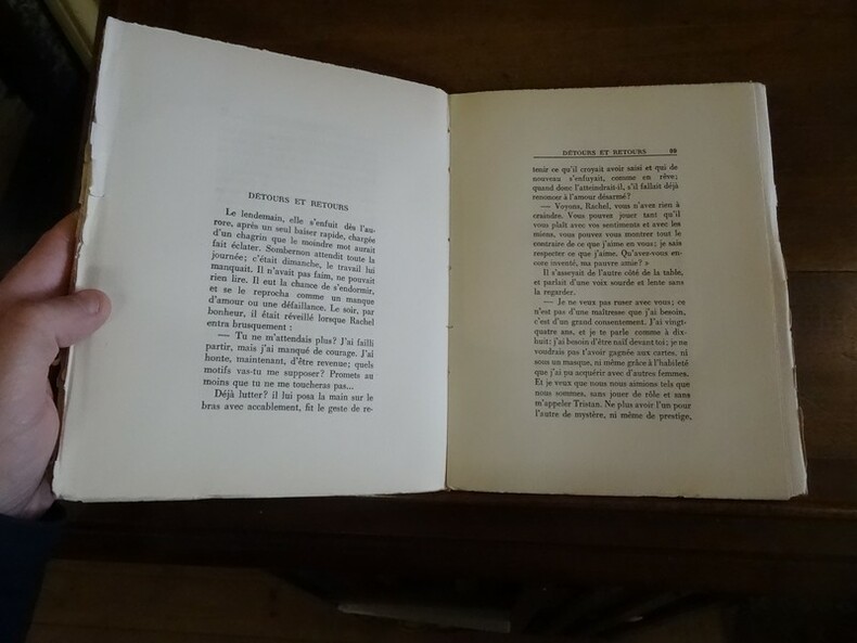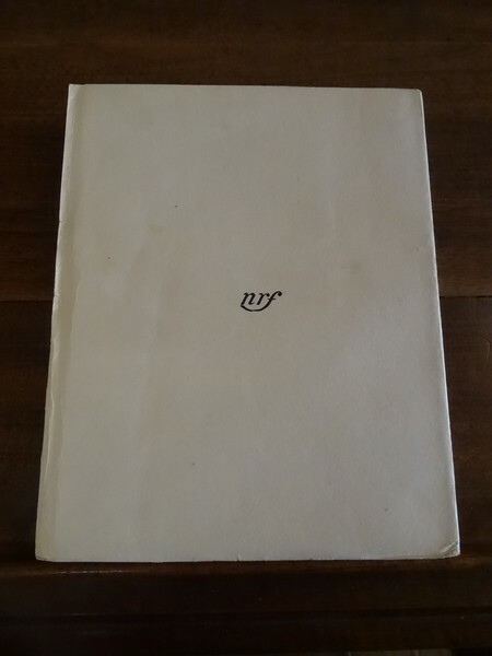 Paris, NRF, 1932. In-4 tellière, broché, 222 pp. Edition originale, tirage limité numéroté à 406 exemplaires, celui-ci étant un des 109 exemplaires du tirage de tête, réimposés dans le format in-4 tellière sur vergé Lafuma-Navarre, portant le numéro LXXXVII, exemplaire nominatif pour Léon Guinotte. Exemplaire non rogné. Papier très légèrement jauni, le papier de la marge non rognée est un peu abîmé. Très bel exemplaire néanmoins.