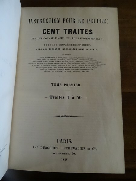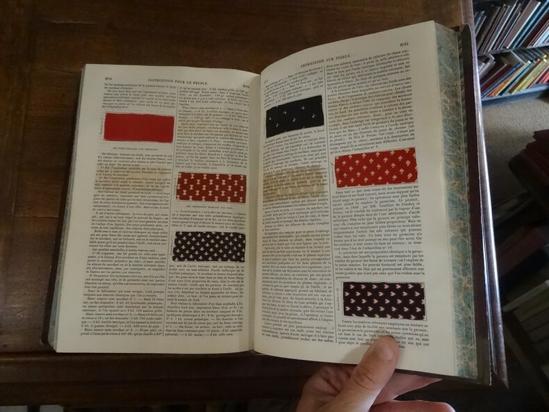 Paris, Dubochet, Lechevalier, 1848. 2 volumes grand in-8, demi veau à petits coins époque, dos à nerfs orné de filets et de roulettes dorés et de fleurons et filets estampés à froid, titre doré, toutes tranches marbrées, faux-titre, titre, 2 ff non chiffrés, 3200 pp (pagination continue et sur 2 colonnes). Ouvrage illustré de nombreuses figures in texte et contenant quelques échantillons de tissu. Accrocs aux coiffes supérieures, dos du tome I assombri, coins un peu émoussés, intérieur frais.