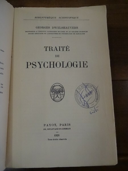Paris, Payot, 1928. In-8, broché. 672 pp. Collection "Bibliothèque scientifique". Couverture et papier jaunis, dos partiellement décollé, tampons sur les page de faux-titre et de titre, nombreux passages soulignés au crayon.