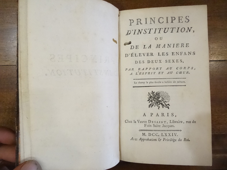 Paris, veuve Desaint, 1774. In-12, plein veau époque, dos à nerfs orné de fleurons et de filets dorés, titre doré, toutes tranches rouges. XVI, 464 pp. Edition originale. Coiffe supérieure très abîmée, coupes frottées, 3 coins émoussés, 1 travail de ver en début de volume affectant un peu le texte, 1 autre sur la 2ème moitié de l'ouvrage dans la marge inférieure, petite mouillure claire en fin de volume.