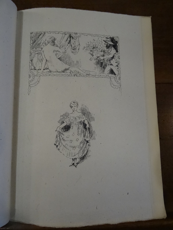 Paris, Ferroud, 1921. In-12, broché, couverture rempliée, plat supérieur illustré d'une vignette en couleurs. 59 pp, 2 pp non chiffrées. Tirage limité numéroté à 1500 exemplaires, celui-ci étant un des 200 sur vélin blanc d'Arches, portant le numéro 285, avec deux états des compositions de Léon Lebègue, en couleurs et en noir sur Chine, frontispice sur Japon en deux états, noir et couleurs. Couverture jaunie, écritures au stylo en page de garde, sinon bel exemplaire.