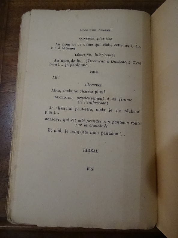 1 vol. petit in-8 cartonnage de l'époque, Le Père de Famille. Drame en cinq actes et en prose par M. Diderot : Chez la Veuve Duchesne, Paris, 1773, 110 pp. et 1 f. (mouill. et mq. angulaire affectant le texte au 30 premières pages) / Misanthrope et repentir. Drame en cinq actes traduit de l'allemand par Bursay et arrangé pour la scène française par la Citoyenne Molé, représentée pour la première fois sur le Théatre de l'Odéon le 7 Nivôse de l'an 7, Chez l'Auteur, Paris, An VII, 79 pp. / Le Barbier de Séville ou La Précaution inutile, Comédie en quatre actes par M. de Beaumarchais Chez Ruault, Paris, 1776, 120 pp. (court de marge, mouill.) / La Jeunesse de Henri IV, Comédie en trois actes et en prose par M. Alexandre Duval. Seconde Edition, Vente, Libraire, Paris, 1812, 68 pp. (court de marge) / La Partie de Chasse de Henri IV, Comédie en trois actes et en prose par M. Collé, Nouvelle EditionChez la Veuve Delormel, et Prault, Paris, 1788, 60 pp. / La Surprise de l'Amour Française, Comédie en prose et en trois actes par M. de Marivaux, Nouvelle Edition, Par la Compagnie des Libraires Associés, Paris, 1772, 76 pp. / Le Sage Etourdi, Comédie en vers et en trois actes de Monsieur de Boissy, , Chez la Veuve Duchesne, Paris, 1777, 50 pp. (un f. court de marge)