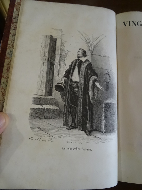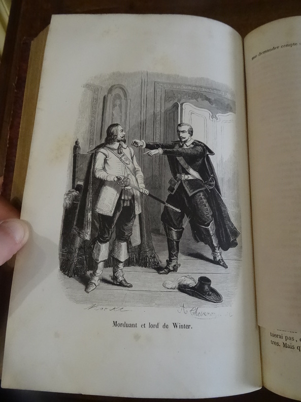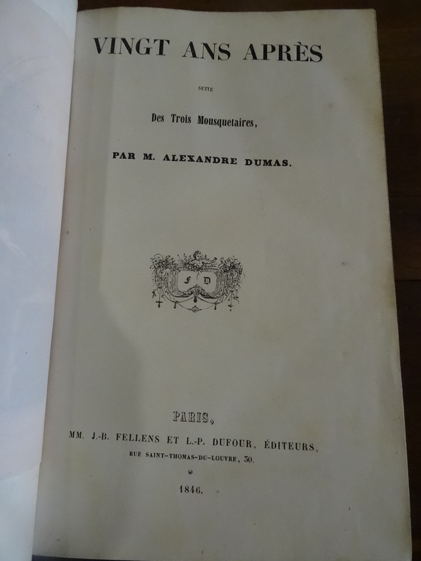 suite des Trois Mousquetaires.In 8 demi-chagrin noir titre,filets dorés,filets à froid, illustrations hors-texte gravées sur bois, lettrines culs de lampe;Dufour,Mulat et Boulanger éditeurs 1857(une petite tache en tête sans gravité,un timbre de colportage, (coins légèrement émoussés-coupes frottées)