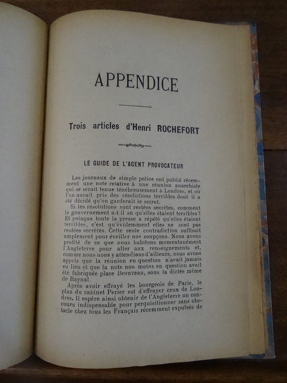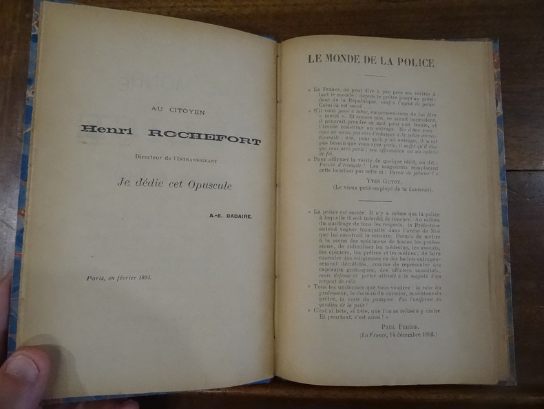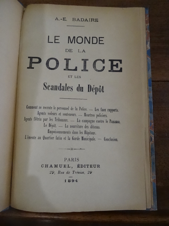 Violente critique de la police et du système policier. L'ouvrage contient, en fin de volume, trois articles d'Henri Rochefort, à qui est dédié l'ouvrage.