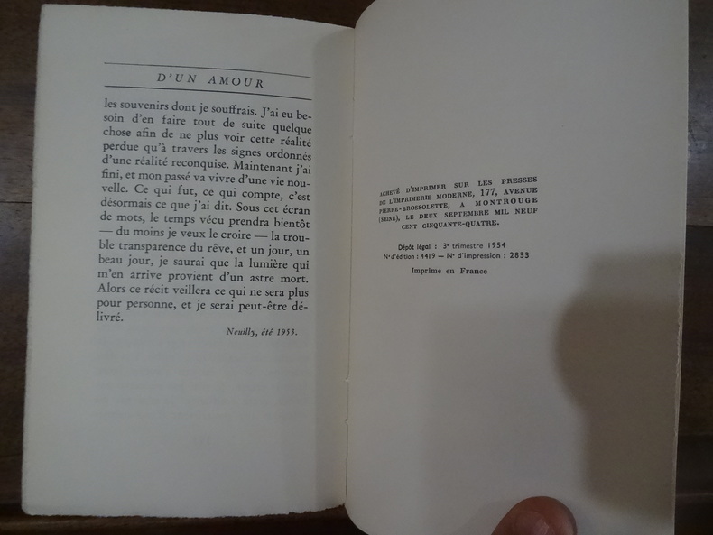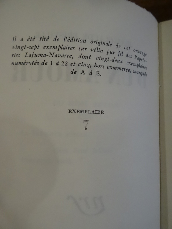 Paris, Gallimard, 1954. In-12, broché. 191 pp, 1 p non chiffrée. Edition originale, tirage limité numéroté à 27 exemplaires, sur vélin pur fil Lafuma-Navarre, seul grand papier, celui-ci portant le numéro 7. Dos jauni, sinon très bon état.