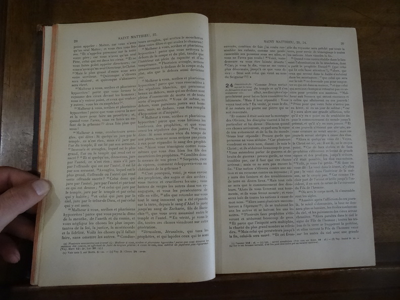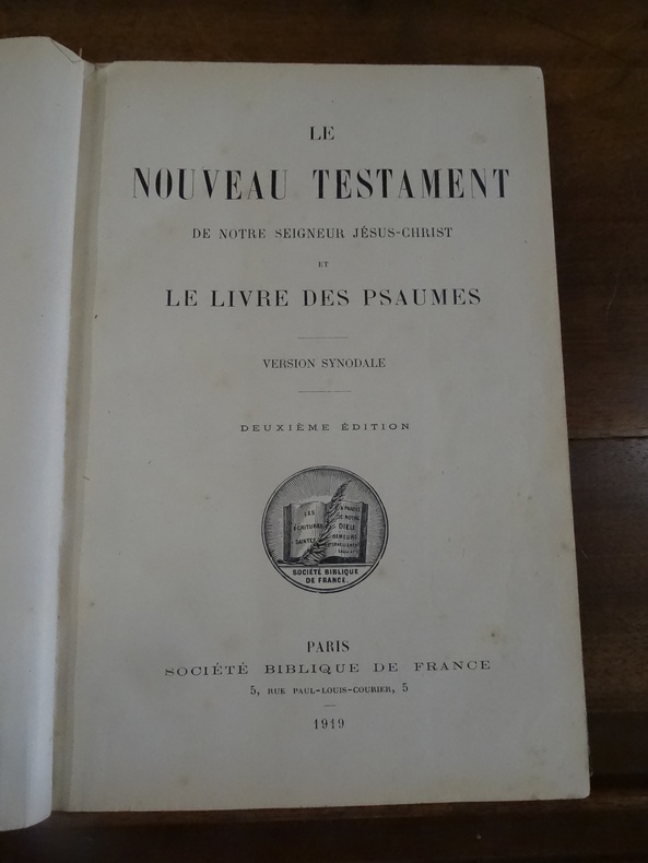 Paris, Société Biblique de France, 1919. Grand in-8 en pleine toile noire. 286 pp, 1 f. de table, 136 pp. Accrocs à la reliure, coins émoussés. Déchirures recollées aux scotch pages 129-132.