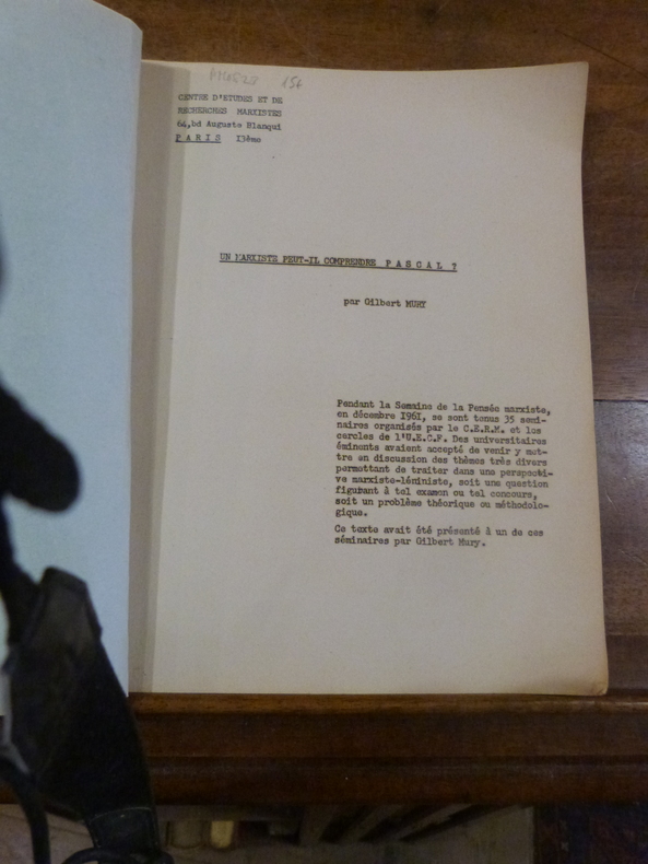 Paris, Centre d'études et de Recherches Marxistes, ss date. In-4 agrafé de 33 pp. Polycopié agrafé. Couverture un peu écorné sinon bon état.