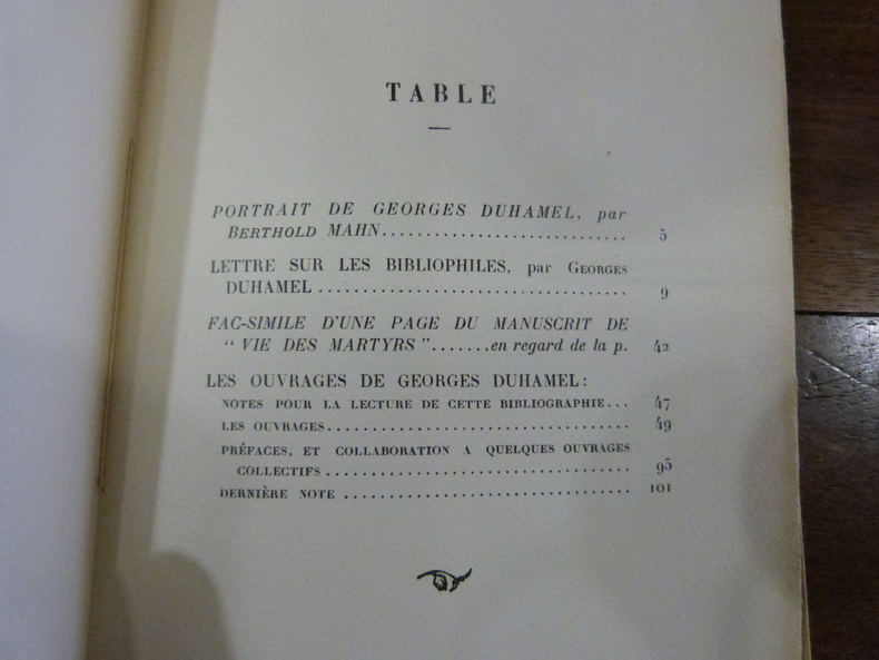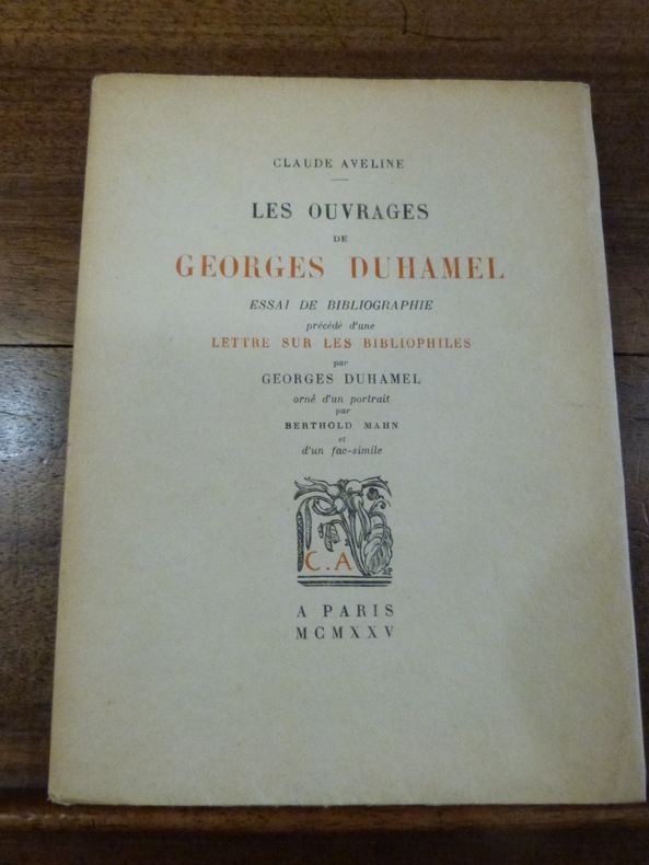 Claude Aveline, Paris 1925 - E.O. sur papier de Montgolfier, essai de bibliographie, préface de Georges Duhamel, avec un portrait de G. Duhamel par Berthold Mahn, et un fac similé de lettre écrite à Verdun,numeroté 583 , edition originale,