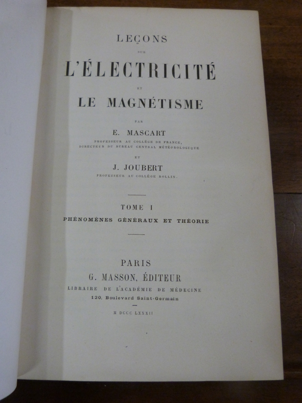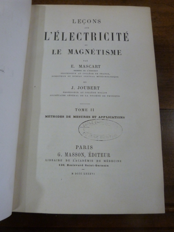 Paris, Masson, 1882-1886. 2 volumes in-8, demi basane époque, dos lisse ornés de filets dorés, titre doré, mention dorée "Ecole du génie maritime" en pied. Faux-titre, titre, II, 736 pp; faux-titre, titre, 875 pp. Ouvrage illustré de nombreuses figures in-texte. Etiquettes aux dos, tampons sur le faux-titre du tome I et le faux-titre et titre du tome II, coiffes, dos et mors frottés.