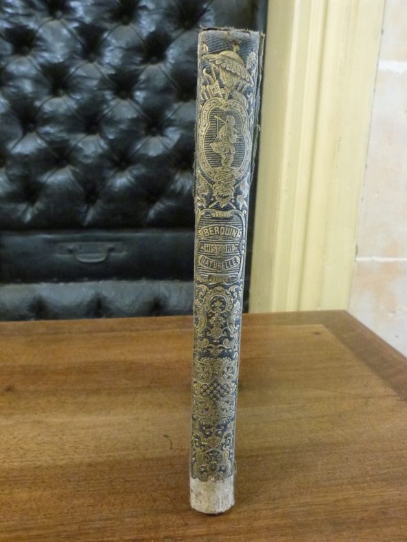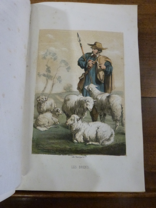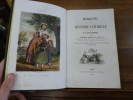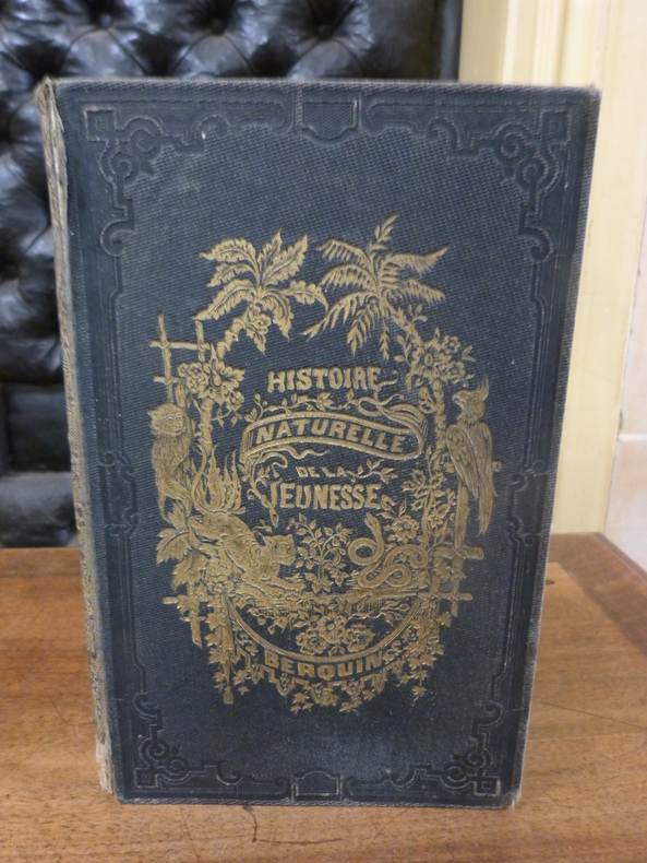 Paris, Librairie pittoresque de la jeunesse, 1851. In-8, percaline romantique, dos lisse richement orné d'un décor doré, titre doré au dos et sur le plat supérieur, plats ornés de décors dorés et à froid, toutes tranches dorées. XV, 224 pp. Ouvrage illustré de 150 gravures sur bois in-texte et 12 lithographies coloriées dont une en frontispice, sous serpentes. Manque de percaline au dos en pied, fentes aux mors en tête, coiffe supérieure abîmée, coins frottés, rousseurs.