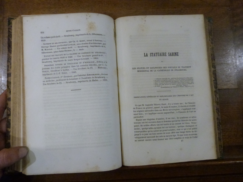Colmar, Au bureau, Allouard et Kaeppelin, 1850. In-8 en demi-veau au dos à faux nerfs orné de fleurons estampé à froid et de roulettes dorées sur les nerfs. Faux-titre, titre, 560 pp. Illustré d'un titre frontispice et de 2 planches. Mors frottés, coins émoussés, et rousseurs éparses.